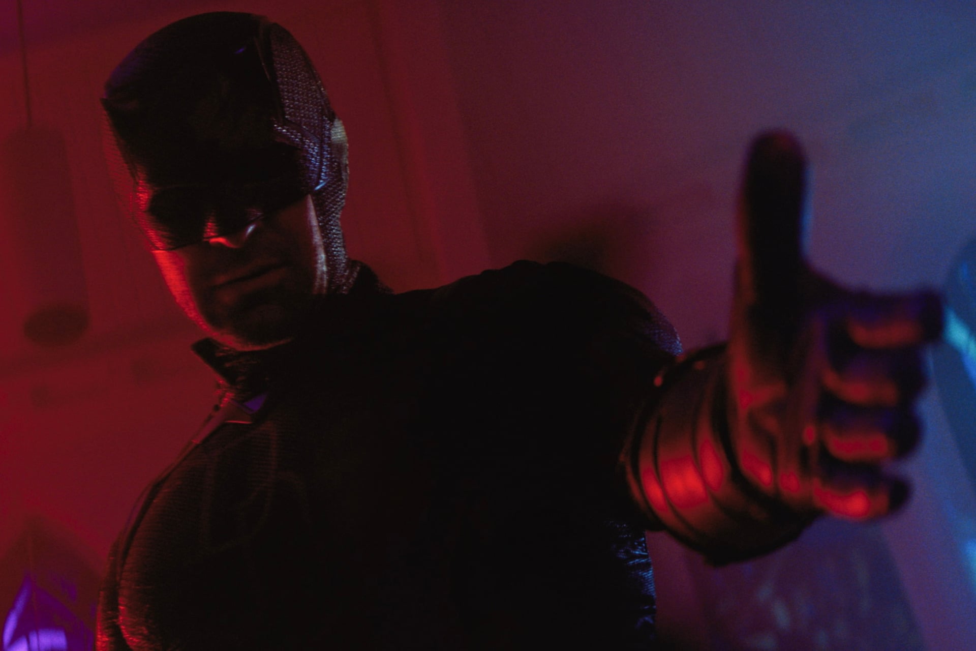 Il y a des plans somptueux, dignes de cases de comics. Des bagarres mémorables, avec une chorégraphie travaillée, dignes des grands moments de Daredevil, premier du nom (on parle toujours de la série la hein). Et cette fois, des effets spéciaux maîtrisés, avec des scènes de vol inexistantes (merci !) et l’absence quasi totale de sensations de fil et de câbles lors des voltiges. Le tout avec des costumes magnifiques et comics accurate, autant pour Daredevil (oh ce costume noir avec le symbole DD) que pour Bullseye.